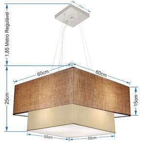 Lustre Pendente Duplo Quadrado Vivare Md-4345 Cúpula em Tecido 60x50cm