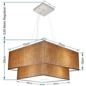 Lustre Pendente Duplo Quadrado Vivare Md-4346 Cúpula em Tecido 70x60cm