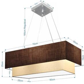 Lustre Pendente Duplo Retangular Vivare Md-4138 Cúpula em Tecido 70x30cm x 60x25cm - Bivolt