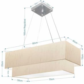 Você já deve ter reparado que os pendente retangular duplo são luminária suspensa que oferecem um charme único aos espaços e estão cada vez mais presentes na decoração. Utilizamos em nossa casa em uma mesa de jantar e só escolha a cor da cúpula em tecido que mais combine com seu ambientes.
