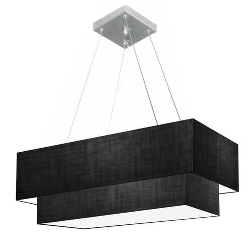 Você já deve ter reparado que os pendente retangular duplo são luminária suspensa que oferecem um charme único aos espaços e estão cada vez mais presentes na decoração. Utilizamos em nossa casa em uma mesa de jantar e só escolha a cor da cúpula em tecido que mais combine com seu ambientes.
