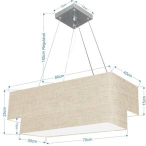 Lustre Pendente Duplo Retangular Vivare Md-4321 Cúpula em Tecido 80x40cm x 70x30cm - Bivolt