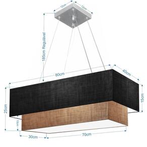 Lustre Pendente Duplo Retangular Vivare Md-4321 Cúpula em Tecido 80x40cm x 70x30cm - Bivolt - Cor: Preto-palha | Voltagem: 127/220V