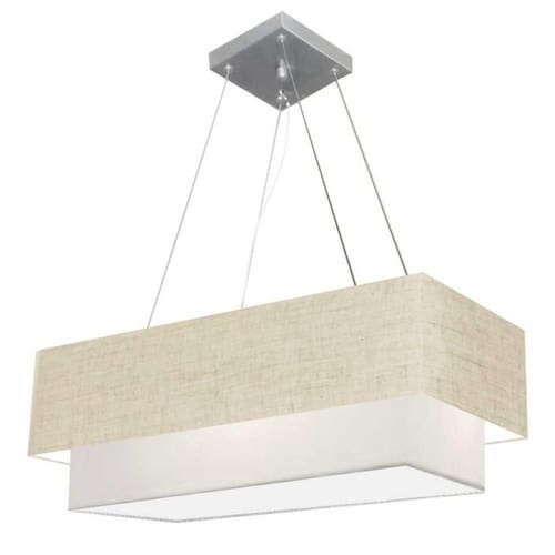 Você já deve ter reparado que os pendente retangular duplo são luminária suspensa que oferecem um charme único aos espaços e estão cada vez mais presentes na decoração. Utilizamos em nossa casa em uma mesa de jantar e só escolha a cor da cúpula em tecido que mais combine com seu ambientes.