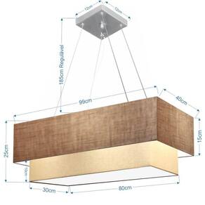 Lustre Pendente Duplo Retangular Vivare Md-4322 Cúpula em Tecido 99x40cm x 80x30cm - Bivolt