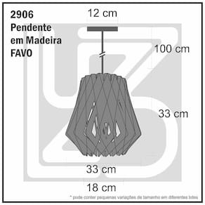 Pendente em madeira com iluminação parcial, muito indicado para salas e cozinhas, com seu ar rústico e design moderno inspira um ambiente contemporâneo. Em madeira certificada de origem nacional. Corte a montagem toda feita de forma manual, garantindo a qualidade nos mínimos detalhes. Sua luz se espalha pelas laterais através de finas camadas de madeira, sua estrutura cria sombras e texturas inusitadas. Descrição Técnica: - Modelo: FAVO - Acabamento: Natural - Quantidade de soquetes: 1 - Acabamento Soquete: Cromado - Material: 100% Madeira - Tamanho (LxAxP): 33 cm x 33 cm x 33 cm - Cabo: 1 m (regulável) - Soquete: Padrão E27 - Bivolt: Sim - Canopla: Em metal cromado (prata) OBS: Como são fabricados 100% em madeira, podem apresentar diferenças em tonalidade conforme o lote da matéria-prima. **Lâmpadas vendidas separadamente**