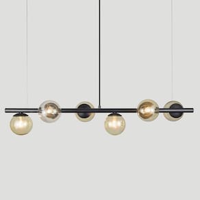 Lustre Pendente Preto - 6 Globos Esfera De Vidro âmbar A linha de luminárias modelo tem um ar contemporâneo, um estilo moderno, minimalista e ao mesmo tempo uma sensação retrô. Os pendentes podem ser colocadas em quartos, salas de jantar ou estar e as arandelas indicamos para lounges, salas, dormitórios ou até mesmo em lavabos. Com Design simples trazem classe e estilo a qualquer ambiente. Todos luminárias da linha são produzidas em alumínio com esferas de vidro. Descrição Técnica: - Modelo: Lustre Pendente com 6 Globos de Vidro - Transparente Âmbar - Acabamento: Pintura a pó térmica - Tamanho dos Globos de Vidro: 120mm - Quantidade de Globos de Vidro e soquetes: 6 - Material: Globo em Vidro e Hastes em Alumínio - Tamanho Aproximado (LxAxP) com os Globos de Vidro: 100 cm X 20 cm X 20 cm - Cabo: Cabo Revestido em Tecido - 70cm - Soquete: Padrão G9 - Bivolt: Sim ****