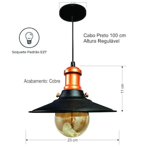 Lustre Pendente Industrial Moderno Nordic Preto Com Cobre