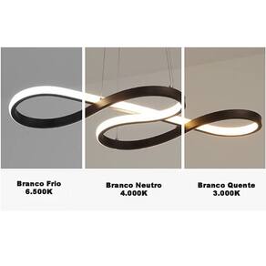 O lustre possiu três temperaturas de cor: Branco Frio, Neutro e Branco Quente. Para fazer a mudança das temperaturas de cor basta desligar e ligar o interruptor do seu próprio ambiente. Altura do lustre é regulável.
