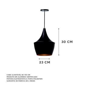 Especificações Técnicas: Marca: Ideallume Modelo: Balão Fixação: Teto Tipo de uso: Interno Pintura: Eletrostática - Tinta: microtextura poliéster Cor: Preto Com Cobre Material : Alumínio Voltagem Do Pendente: Bivolt 110/220v Soquete: E27 Medidas L x A x D : 23 x 30 x 23 cm Lâmpada: Utiliza 1 lâmpada Não inclusa