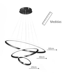 3 anéis de led, criando um efeito visual único Tecnologia led de baixo consumo e alta durabilidade Ajuste de intensidade e temperatura de cor Ideal para ambientes internos de qualquer estilo Material de alta qualidade e resistência