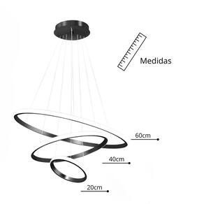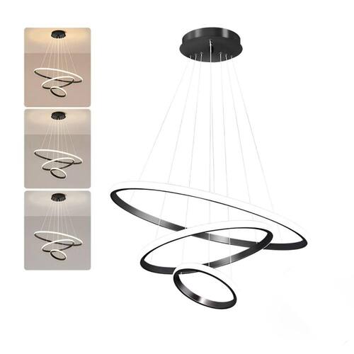 Lustre pendente led 3 aneis preto Lustre pendente led 3 anéis - ilumine seu ambiente com estilo e sofisticação Este lustre pendente em formato de 3 anéis proporciona uma iluminação moderna e elegante, ideal para decorar salas de jantar, quartos, escritórios e outros ambientes. Tecnologia led de alta eficiência Com iluminação led de alta qualidade, o lustre oferece uma luz suave e econômica, perfeita para criar ambientes acolhedores sem pesar na sua conta de energia. Ajuste de intensidade e temperatura de cor Escolha a intensidade e a cor da luz que se adapta ao seu ambiente, desde um tom mais quente para momentos de relaxamento até uma luz mais fria para maior foco e produtividade. É possível escolher entre as cores branco neutro, branco quente e branco frio, através de um simples toque no , a cada toque uma cor. Instalação fácil e prática A instalação do lustre é simples, e seu design versátil combina com diversos estilos de decoração, agregando sofisticação e modernidade ao seu espaço. Características: 3 anéis de led, criando um efeito visual único Tecnologia led de baixo consumo e alta durabilidade Ajuste de intensidade e temperatura de cor Ideal para ambientes internos de qualquer estilo Material de alta qualidade e resistência Dimensões: Diâmetro dos anéis: 20cm / 40cm / 60cm Altura total: 1,30 m ajustável para o espaço ideal Especificações técnicas: Cor da luz: neutro/ branco quente / branco frio Temperatura da cor: 4000k/ 3000 k / 6000k ajustável Tensão: bivolt Peso: 1,7 kg Conteúdo da embalagem: 01 - lustre pendente led 3 aneis preto 01 - canopla de teto Acompanha bucha e parafuso : do vendedor: 3 meses