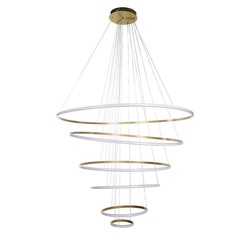 Características do Produto: Altura Total: 5 metros, ideal para espaços amplos. Largura Total: 120 cm, garantindo presença marcante no ambiente. Diâmetro dos Aros: 20cm, 40cm, 60cm, 80cm, 100cm, 120cm. Canopla base de teto : 32 cm, proporcionando uma fixação segura e discreta. Peso: 10 kg Temperatura de Cor: 3500K. Tensão: 100 - 240V Bivolt , compatível com qualquer sistema elétrico.