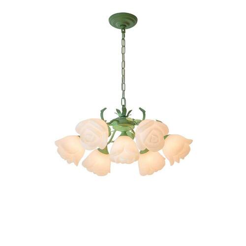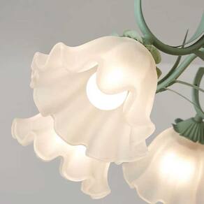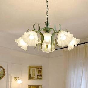 Modelo: LA0031 Potência: 60W (Não Acompanha Lâmpada) Soquete: 7 x Halopin G9 Cor do produto: Verde Material: Metal e Vidro Dimensões: Ø78cm x Altura 85cm Tamanho da Flor: 16cm Tamanho da Base: 13cm