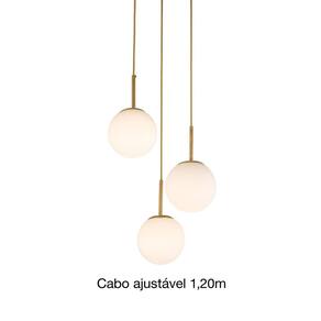 Lustre Pendente Moderno 3 de Vidro Fosco e Dourado 6 MESES Lustre Pendente Moderno 3 de Vidro Fosco e Dourado Transforme seu ambiente com sofisticação e design moderno Este lustre pendente conta com 3 cúpulas esféricas em vidro fosco, que proporcionam uma iluminação suave e aconchegante, perfeita para salas de estar, jantar, quartos, escritórios ou ambientes comerciais. A base e os cabos em acabamento dourado elegante trazem um toque de requinte, enquanto o design minimalista garante fácil integração em diversos estilos de decoração. - Características: Modelo: Lustre Pendente 3 Estrutura: Metal com acabamento dourado Cúpulas: Vidro fosco branco Cabo ajustável: até 1,20m Estilo: Moderno, sofisticado e versátil Ideal para: salas, quartos, escritórios, ções e áreas gourmet - Destaque-se com um lustre que une beleza, qualidade e iluminação aconchegante. O produto é novo Sim, todos os produtos são novos. Caso o produto não supra minha necessidade posso devolver ou trocar O produto tem Sim, todos os produtos têm . Se ainda houver alguma dúvida estamos a disposição para responder de segunda-feira a sexta-feira das 08:00 às 17:30. Marca: Não Informado
