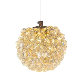 Cor: Dourado Soquete: G9 Quantidade de lâmpadas: 1x não inclusa Tensão: Bivolt Dimensões: 12,5cm, cabo regulável de 1,90m Material: Cristal, Metal Índice de proteção: IP20 interno Marca: Não Informado