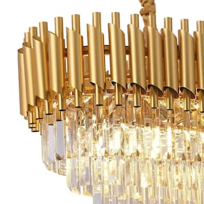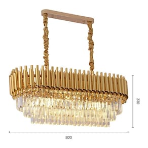 Especificações gerais do produtoVoltagem: BivoltDimensões AxLxP mm : 330x800x300Cor: DouradoMaterial: Alumínio, Cristal e MetalGarantia: 1 ano junto ao fabricanteReferência: LTR-012DComprimento dos Cabos: Cabo ajustável, aproximadamente 100cmLâmpada Inclusa: NãoLocal de Uso: InternoNúmero de Lâmpadas: 8Potência Máxima por soquete : 40WSoquete: E14O que acompanha o produto1 Lustre Pendente Marca: Não Informado