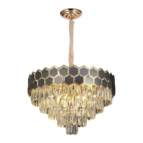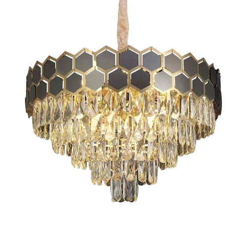 Especificações gerais do produto Voltagem: BivoltDimensões AxLxP (mm): 1150x600x600Cor: DouradoMaterial: Metal e CristalGarantia: 1 ano junto ao fabricanteReferência: LTR-017Comprimento dos Cabos: Cabo ajustável, aproximadamente 100cmLâmpada Inclusa: NãoLocal de Uso: InternoNúmero de Lâmpadas: 12Potência Máxima (por soquete): 40WSoquete: E14 O que acompanha o produto 1 Lustre Pendente