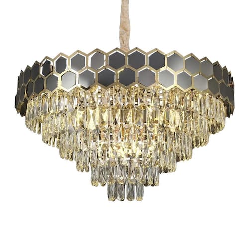 Especificações gerais do produtoVoltagem: BivoltDimensões AxLxP mm : 1200x800x800Cor: DouradoMaterial: Metal e CristalGarantia: 1 ano junto ao fabricanteReferência: LTR-018Comprimento dos Cabos: Cabo ajustável, aproximadamente 100cmLâmpada Inclusa: NãoLocal de Uso: InternoNúmero de Lâmpadas: 16Potência Máxima por soquete : 40WSoquete: E14O que acompanha o produto1 Lustre Pendente
