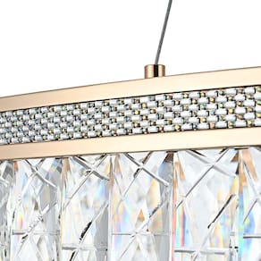 Voltagem: BivoltDimensões AxLxP (mm): Altura: 120mm; Círculo 1: 600mm; Círculo 2: 400mmCor: Ouro BrilhoMaterial: Alumínio, Metal e VidroGarantia: 1 ano junto ao fabricanteReferência: 2896Fluxo Luminoso: 3290 lúmensComprimento dos Cabos: Cabo ajustável, máximo 250 cmPotência: 47WLocal de Uso: InternoModelo/Tecnologia: LED EmbutidoTemperatura da Cor: 3000K - Branco QuenteÂngulo de Abertura: 120ºGrau de Proteção: IP 20Frequência: 50/60 Hz Itens inclusos:1 Lustre Pendente