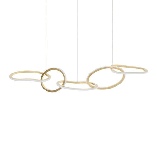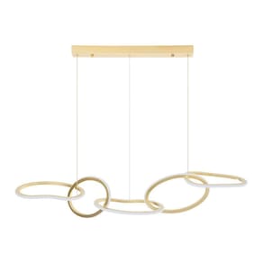 Especificações:Voltagem: BivoltDimensões AxLxP (mm): 250x1220x250Cor: Ouro ChampagneMaterial: Metal, Acrílico e SiliconeGarantia: 1 ano junto ao fabricanteReferência: 2597Fluxo Luminoso: 5360 lúmensComprimento dos Cabos: Cabo ajustável, máximo 220 cmPotência: 67WLocal de Uso: InternoModelo/Tecnologia: LED EmbutidoTemperatura da Cor: 3000K - Branco QuenteÂngulo de Abertura: 120Grau de Proteção: IP 20Frequência: 50/60 HzItens inclusos:1 Lustre Pendente