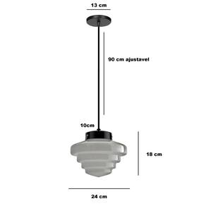 Lustre Pendente Novo Retro Globo Vidro Escada 17x24 Lustre Pendente com Globo Vidro leitoso escada 17x24 Cor acabamento da base e canopla: Preto fosco Material: Aluminio e globo em vidro leitoso medidas 17x24x10cm Indicado Para Instalação no teto Informações Complementares/Técnicas Acabamento com pintura eletrostática Não Acompanha Lâmpada Altura Regulável:Sim Compativel com 1 Lâmpada Potência Máxima de Lâmpada60w SoqueteE27 VoltagemBivolt Ambiente Indicado: Ambientes Internos e ou externos desde que abrigado da chuva Garantia1 Ano contra defeitos de fabricação Recomendações De Uso/Manutenção E LimpezaUtilizar pano macio e levemente umedecido, não utilizar produtos químicos ou abrasivos. Realize a limpeza com o produto desligado da rede elétrica, utilize: espanador de pó ou pano úmido com água. Nunca utilize soluções abrasivas. Aviso Ao instalar o produto, certifique-se que a rede elétrica esteja desligada para sua segurança. A instalação não está inclusa na venda ou preço do produto, e é de inteira responsabilidade do cliente. Dica Antes de comprar o seu produto verifique as medidas, o local onde pretende instalar e se necessário o serviço de um profissional qualificado. Marca: Spotled