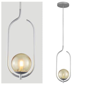 Lustre Pendente On Clip - Prata Com Globo De Vidro âmbar