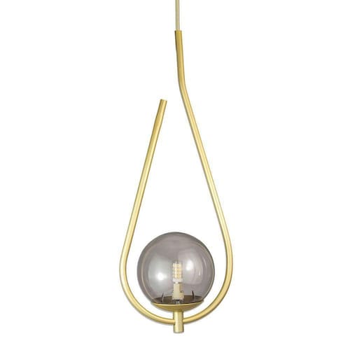 Lustre Pendente On Drop - Dourado Com Globo De Vidro Fumê Lustre Pendente ON DROP, design minimalista ao seu estilo. Descrição Técnica: - Modelo: On Drop - Acabamento: Pintura Térmica - Material: Aluminio e vidro - Tamanho (LxA): 16 cm x 45 cm - Globo: 12cm - Cabo: 70 cm (regulável) - Soquete: Padrão G9 - Bivolt: Sim - Canopla: 12 cm