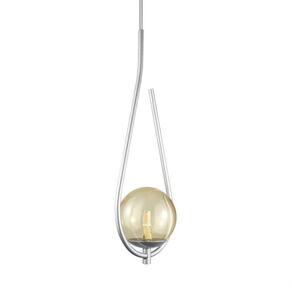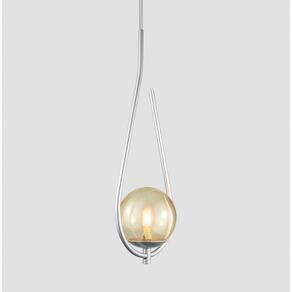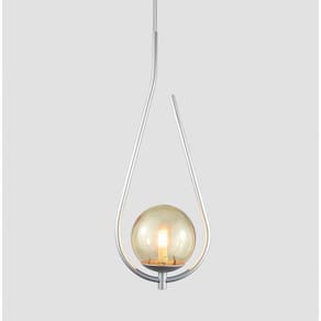 Lustre Pendente On Drop - Prata Com Globo De Vidro âmbar Lustre Pendente ON DROP, design minimalista ao seu estilo. Descrição Técnica: - Modelo: On Drop - Acabamento: Pintura Térmica - Material: Aluminio e vidro - Tamanho (LxA): 16 cm x 45 cm - Globo: 12cm - Cabo: 70 cm (regulável) - Soquete: Padrão G9 - Bivolt: Sim - Canopla: 12 cm