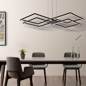 Lustre pendente perfil led 96w design moderno quarto sala escritorio bivolt Cores: preto luz branca 6000k Voltagem: bivolt Lustre pendente perfil led 96w design moderno quarto sala escritorio bivolt O lustre pendente de teto led é a perfeita mistura de funcionalidade e beleza que vai deixar sua casa ainda melhor Seu sistema de led integrado de 96w, garante uma ótima iluminação em qualquer ambiente que for instalado, e se adapta a todos os estilos de decoração, resultando em um espaço moderno e elegante. Podendo alcançar espaços bem amplos considerações precisam ser feitas, como: cor das paredes, cor do piso, cor dos móveis, altura do ambiente, já que são elementos que interferem diretamente na iluminação do local . Outra ótima característica desse plafon de sobrepor é a economia de energia elétrica, pois o consumo de led é baixo e tem vida útil maior que as lâmpadas convencionais, conferindo um excelente custo benefício. Disponível nas cores branca ou preta, e com tons de luzes nas opções de 6000k luz branca fria, 4000k luz neutra ou 3000k luz branca quente amarela. A cor da luz deve ser escolhida conforme o ambiente. Para áreas que precisam de concentração e atenção como escritório, o indicado é luz branca, mas se for para um local de descanso, como quarto e sala, pode ser utilizado luz neutra ou amarela. Lustre pendente led 96w design moderno quarto sala bivolt, fácil de instalar e combinar Combina bem em ambientes como cozinhas, salas de estar, salas de estar, quartos, ambientes comerciais, varanda gourmet, escritórios, etc. Fora que ele também é muito fácil de fazer manutenção da limpeza . Lembrando que o produto já contém led integrado com de 1 ano Escolha a cor de sua preferência no momento da compra. Medidas do produto podem variar 5% para mais ou para menos de acordo com o lote do produto. Assim como suas cores podem sofrer alterações de acordo com a configuração de sua tela. Informações técnicas Cores disponíveis conforme disponibilidade em Branco - preto Dimensões do produto 73cm de comprimento - 73cm de largura - 100cm altura ajustável Peso 1.295 kg Cor da luz 3000k - luz amarela quente / 4000k luz neutra / ou 6500k - luz branca fria Quantidade de lâmpadas necessárias Led integrado Potência máxima por lâmpada Led integrado - 96w Acompanha lâmpada Led integrado Possui led integrado Sim Lúmens 4608 Fluxo luminoso 48 lúmens / watts Material Alumínio e led Necessita montagem Não Tensão Bivolt Produto garantido por 01 ano após emissão da nota ou cupom fiscal ao consumidor
