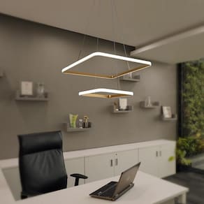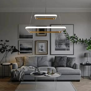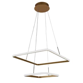 Lustre Pendente Quadrado 02 Arcos LED 3000K Dourado Domum - Sofisticação de sobra em uma iluminação aconchegante!