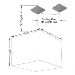 Pendente quadrado apresenta facilidade na instalação e manutenção e limpeza, além de possibilitar o ajuste da altura de acordo com suas necessidades. O que oferecem um charme único aos espaços e estão cada vez mais presentes na decoração.DimensãoCúpula em Tecido: 30x40x40cm