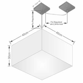 Pendente quadrado apresenta facilidade na instalação e manutenção e limpeza, além de possibilitar o ajuste da altura de acordo com suas necessidades. O que oferecem um charme único aos espaços e estão cada vez mais presentes na decoração.DimensãoCúpula em Tecido: 30x40x40cm
