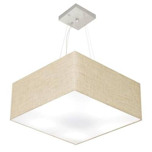 Lustre Pendente Quadrado Md-4065 Cúpula Tecido 30/70x70cm Rustico Bege