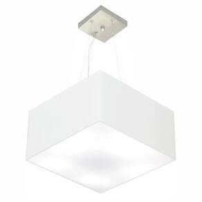 Lustre Pendente Quadrado Md-4197 Cúpula Tecido 25/45x45cm Branco