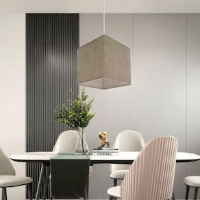 Pendente quadrado apresenta facilidade na instalação e manutenção e limpeza, além de possibilitar o ajuste da altura de acordo com suas necessidades. O que oferecem um charme único aos espaços e estão cada vez mais presentes na decoração.