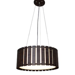 Pendente Circular de Madeira 40cm modelo Saruê Design sofisticado e acabamento de ótima qualidade Acabamento em madeira Preto Ébano que possibilita a combinação com diversos ambientes Feito de madeira com Acrílico leitoso Possui 3 soquetes E27, onde aceita diversos tipos de lâmpadas Tamanho: 40cm de diâmetro por 17cm de altura Atenção: O produto não acompanha Lâmpadas Ean: 7898674170999
