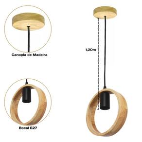 Pendente rústico em madeira, traz estilo e beleza para seu ambiente. Ideal para restaurantes, bares, salas de jantares, sítios, casas de campo, comércios, cozinhas, varandas, escritórios, resorts, áreas de estar, armazéns ou onde preferir, deixando o local mais elegante.Especificações do Pendente:- Materiais do Pendente: Madeira, Metal e fio - Modelo: Pendente Redondo - Cabo ajustável - Bocal de metal com rosca E27 - Voltagem: Bivolt- Potência máxima por pendente: Até 50W- Base para fixação no teto: Metal- Tampa/Canopla: Redonda de madeira - Fiação: Fio PP com Acabamento em tecido - Acompanha peças para montagem e instalação do produto- Indicado para uso: Interno- *ATENÇÃO: O pendente não acompanha nenhuma lâmpada. Dependendo do lote é possível que tenham pequenas diferenças de tonalidades de cores no pendente ou no fioMedidas do pendente: - Medida total do pendente sem o arco de madeira: De ponta a ponta 1,20cm- Medida do fio: 1,15m - Tampa/Canopla: 10cm de diâmetro x 2cm de altura- Medidas do arco de madeira: 18cm de diâmetro x 3,7cm de profundidade - Medidas detalhadas nas fotos do anúncioItens inclusos no kit:- 1 Pendente/Bocal com fio - 1 Tampa/Canopla- 1 Kit instalação contendo parafusos, buchas e base para fixaçãoGarantia do vendedor: 90 dias