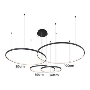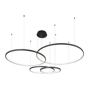 Especificações Gerais do Produto: Voltagem: Bivolt Dimensões AxLxP (mm): Círculo: 1000mm; Círculo: 800mm; Círculo: 600mm; Círculo: 400mm Cor: Preto Material: Alumínio e Silicone Garantia: 1 ano junto ao fabricante Referência: QD05365 Cor Principal: Preto Fluxo Luminoso: 12180 lúmens Comprimento dos Cabos: Cabo ajustável, máximo 500 cm Potência: 174W Local de Uso: Interno Modelo/Tecnologia: LED Embutido Temperatura da Cor: 3000K - Branco Quente