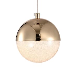 Voltagem: Bivolt;Dimensões AxLxP (mm): 130x120x120;Cor: Dourado;Material: Metal e Acrílico;Garantia: 1 ano junto ao fabricante;Referência: SKY-4015;Fluxo Luminoso: 300 lúmens;Potência: 6W;Local de Uso: Interno;Modelo/Tecnologia: LED Embutido;Temperatura da Cor: 3000K - Branco Quente; Itens Inclusos:1 Lustre Pendente Glob Ean: 7898678152960