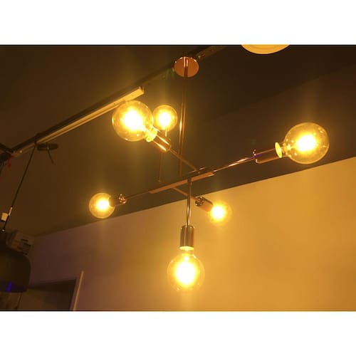 Lustre em forma de hastes braços. Opções de uso: com lâmpadas convencionais oferencendo uma boa claridade ao ambiente lâmpadas filamento decorativas resultando em um estilo retrô e sofisticado ao ambiente