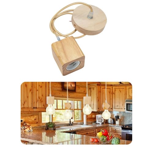 Especificações do pendente: - materiais do pendente: madeira maciça por fora e por dentro bocal/soquete de plástico com rosca e27 4a 250v - voltagem: bivolt - potência máxima recomendada por pendente: até 20w - base para fixação no teto: metal - tampa canopla: redonda de madeira maciça - fiação: fio pp com acabamento em tecido combinando com a cor do pendente - acompanha peças para montagem e instalação do produto - peso total do pendente: cada pendente pesa aproximadamente 225 gramas - indicado para uso: interno - Atenção: o pendente não acompanha nenhuma lâmpada. Dependendo do lote é possível que tenham pequenas diferenças de tonalidades de cores