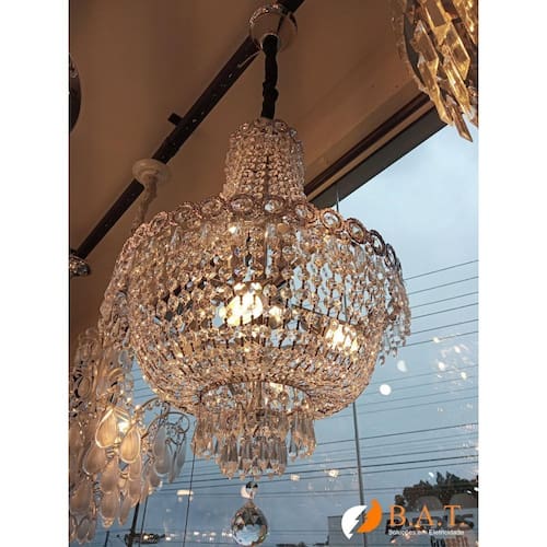 O Lustre Pendente Império da Taschibra é um item moderno para diversas ocasiões. É composto por uma canopla e estrutura metálica, e cristais de alto brilho. É uma peça imponente que se destaca nos ambientes, possui um belíssimo design. Indicado para salões de festas, buffet, eventos, casamentos, salas de estar e jantar, escadarias, halls de entrada, e dormitórios.