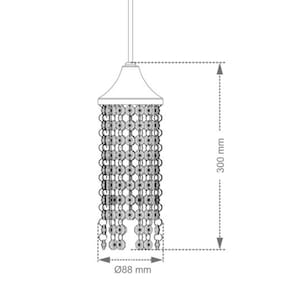 Lustre Pendente Taschibra Valência M E27 Bivolt Características Gerais do Produto: Dimensões AxLxP cm : 30 X 8,8 X 8,8 Produzido em: Aço e Cristais Voltagem: Bivolt tanto em 110v como em 220v Cor Acabamento: Prata Cor do Cabo: Transparente Potência Máxima Por Soquete : 40W Para Uso em Soquete: E27 Comprimento do Cabo: 90 cm, altura regulável Formato: Redondo : 90 dias junto ao fabricante Aplicação: Teto Acompanha Lâmpada: Não Acompanha o produto: 01 Lustre Completo 01 Kit Instalação 01 Manual de Instalação : 90 dias junto ao fabricante Marca: Não Informado