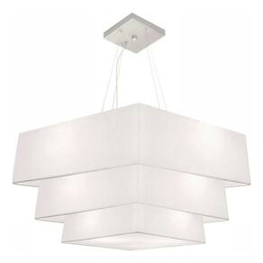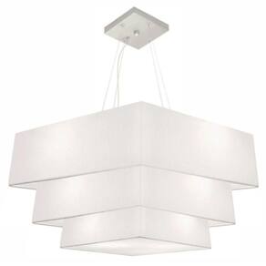 Pendente Triplo Quadrado Moderno Indicado para decoração de Mesa de Jantar, Sala, Sala de Estar, Sala de Jantar, Suíte, Quartos, Mezanino, Corredor, Balcão, Lojas, Comércios, Sala com Cozinha integrados, Bares e Restaurante, Sala de Tv.DimensãoCúpula em Tecido: 30x80x70x60cm