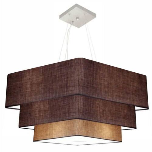 Pendente Triplo Quadrado Moderno Indicado para decoração de Mesa de Jantar, Sala, Sala de Estar, Sala de Jantar, Suíte, Quartos, Mezanino, Corredor, Balcão, Lojas, Comércios, Sala com Cozinha integrados, Bares e Restaurante, Sala de Tv.DimensãoCúpula em Tecido: 30x80x70x60cm