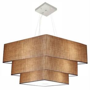Lustre Pendente Triplo Quadrado Md-4165 Cúpula em Tecido 80x70x60cm Palha
