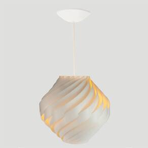 Pendente TWIST é uma peça unica em beleza e praticidade. Proporciona uma luz suave e devido as suas curvas uma elegância incrível. Segue com 1 metro de cabo, canopla branca fosca e trava cabo regulável (permite você regular a altura do pendente) .