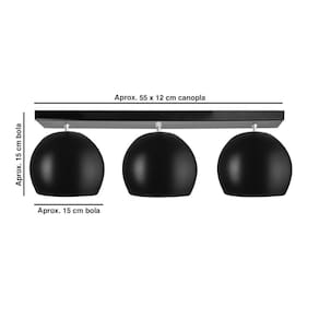 Dados Técnicos: -Alimentação: Bivolt -Tipo de lâmpada: 3 x E-27. (não inclusas) -Peso Aprox. com embalagem: Aprox. 1800 kg -Soquete de Porcelana -Dimensões aprox. do produto 15x14cm (bola) -Canopla de Fixação de 55x12cm de diâmetro x largura.