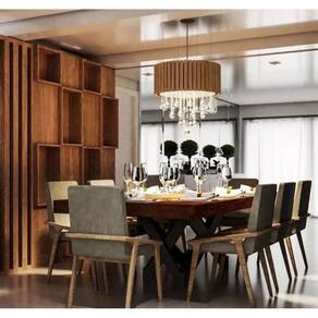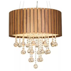 O Lustre Com Cristais Ripado Amêndola possui um acabamento em madeira Amêndola Rústica, que permite a combinação perfeita com diversos estilos de decoração. Sua base da placa é em acrílico, o que confere ainda mais charme e elegância ao produto.